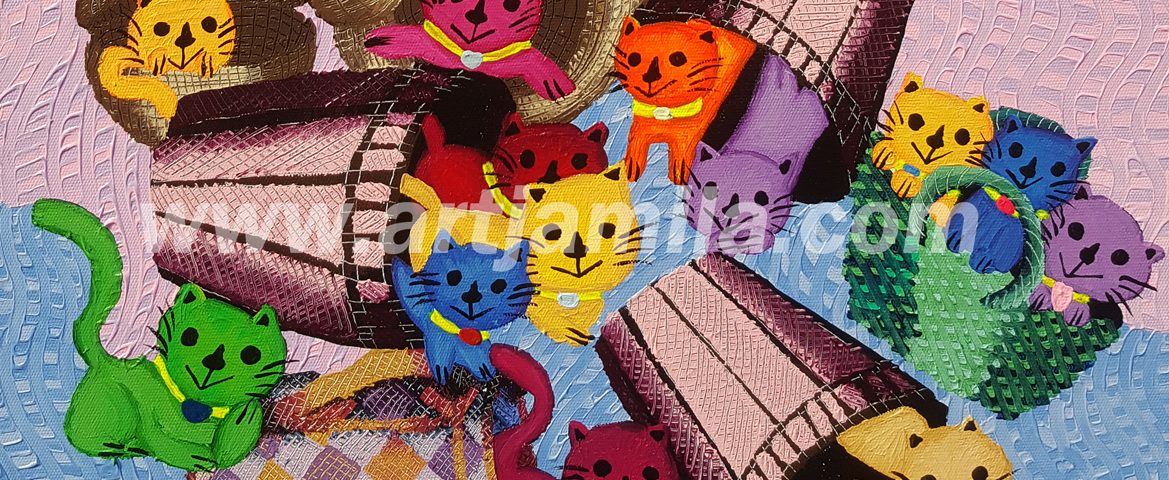 Cats in Basket Series 10 • Acrylic on canvas • 61 x 61 cm • 2019• by artjamila