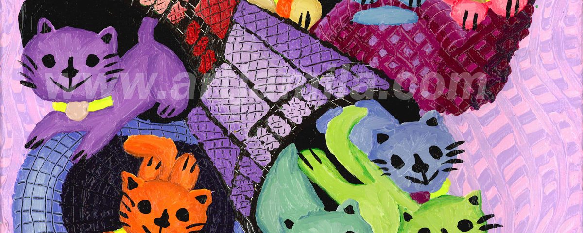 Cats in Basket Series 13 • Acrylic on canvas • 30 x 30 cm • 2019 • by artjamila