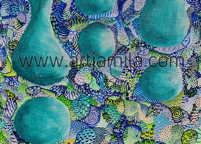 Interpretation: The world has not overcome the COVID-19 pandemic until today. Everyone’s lives had to change for the new normal like wearing mask made of plastic polymer (polypropylene fabric). For many years, the world has been battling with plastic waste in the ocean. Now, we are adding to the waste in the ocean from our masks, destroying marine life. This painting describes marine life in a beautiful ocean which is covered with plastic fabric waste.