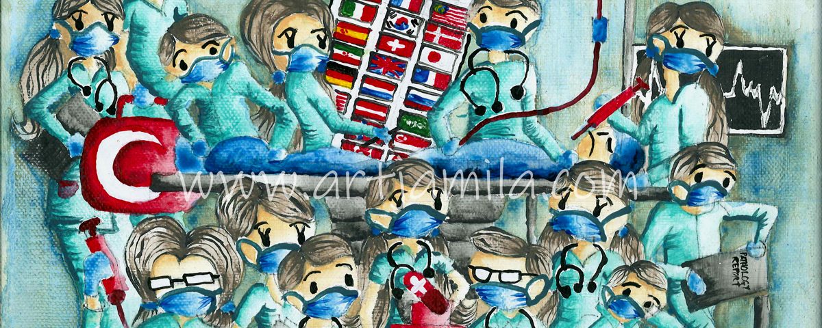 Interpretation: COVID 19 has shaken the world. The whole world is fighting a war. We are in a battle with an invisible killer COVID19, a killer pandemic. Health workers are on the frontlines fighting against the enemy, not with weapons and guns, but with medical equipment and tender loving care. They are using their internal strength to the fullest to overcome the challenges of their exhausting task. They are HEROES. This painting is dedicated to all our heroes in the healthcare services. Thank you for your hard work and dedication to many nations worldwide. May God Bless You.