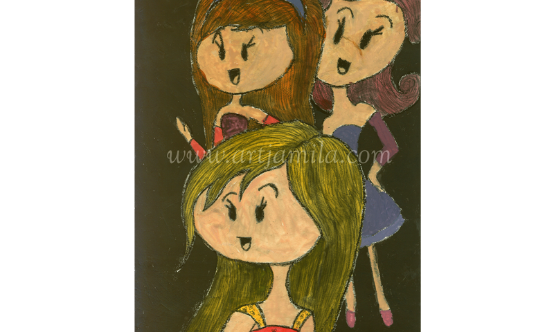 Interpretation: The most beautiful things are not associated with money. They are memories. Memories are the key to the future. Memories are treasures of the heart. Jamila loves travelling. Most of her travels during her childhood are with her mother and her younger sister. “THREE LADIES” was inspired by those memories. Time is a blessing and “Memories Are Golden”.