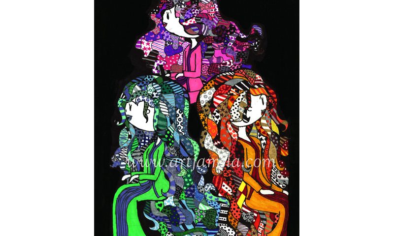 Three Ladies Series 6 • Mix Media (Pigment Ink & Acrylic) on Acid Free Paper • 29.7 x 20.6 cm • 2017 • by artjamila