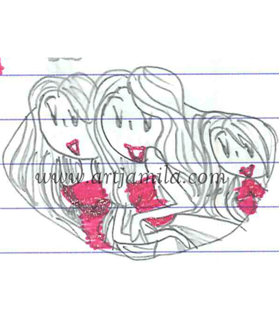 Interpretation: Jamila loves travelling. Most of her travels during her childhood are with her mother and younger sister. “THREE LADIES” was inspired by those memories.