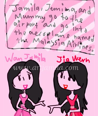 Interpretation: Jamila loves travelling. Most of her travels during her childhood are with her mother and younger sister. “THREE LADIES” was inspired by those memories.