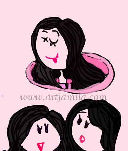 Interpretation: Jamila loves travelling. Most of her travels during her childhood are with her mother and younger sister. “THREE LADIES” was inspired by those memories.