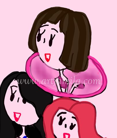 Interpretation: Jamila loves travelling. Most of her travels during her childhood are with her mother and younger sister. “THREE LADIES” was inspired by those memories.