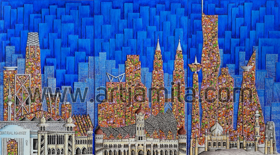 Unity in Diversity: Skyline, Series 5A 5B 5C • Acrylic on canvas • 152 cm x 274.5 cm • 2022 • by artjamila