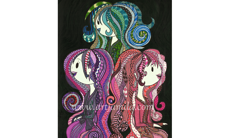 Three Ladies Series 11 • Mix Media (Pigment Ink & Acrylic) on Acid Free Paper • 50 x 32.5 cm • 2017 • by artjamila